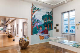 Serie of four illustrations used for wallpapers in the 70. children's book exhibition at Klingspor Museum in Offenbach, Germany.